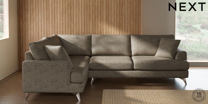 7.3.1 Buy Parker Large Corner Sofa - Left Hand Monza Faux Leather Easy Clean Mink Brown High Metal - Chrome from the Next UK online shop Click here to use our accessible website