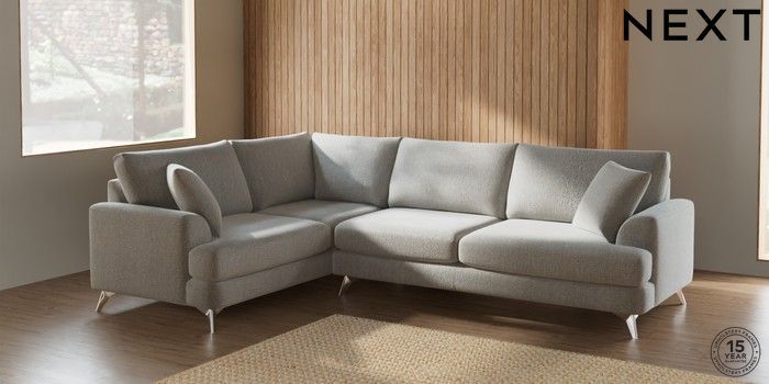 7.2.6 Buy Parker Large Corner Sofa - Left Hand Multi Weave Light Blue High Metal - Chrome from the Next UK online shop Click here to use our accessible website