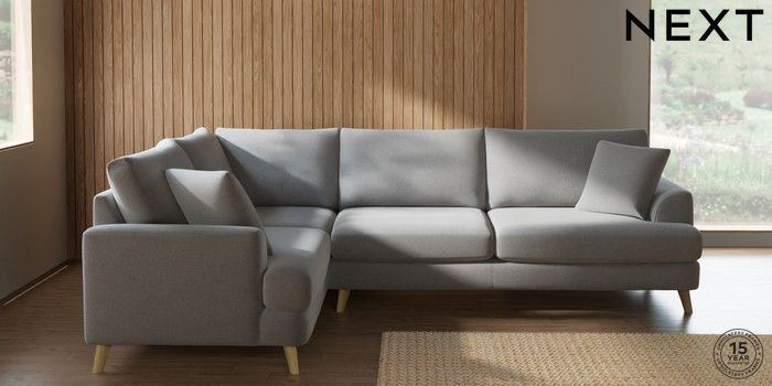 7.2.10 Buy Parker Large Corner Sofa - Left Hand Natural Mix Light Grey Low Retro Tapered - Light from the Next UK online shop Click here to use our accessible website