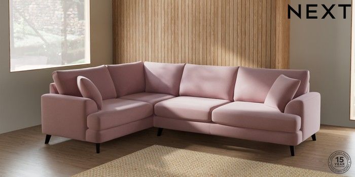 7.2.5 Buy Parker Large Corner Sofa - Left Hand Natural Mix Light Rose Pink Low Retro Tapered - Dark from the Next UK online shop Click here to use our accessible website