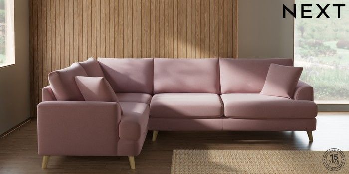 7.2.10 Buy Parker Large Corner Sofa - Left Hand Natural Mix Light Rose Pink Low Retro Tapered - Light from the Next UK online shop Click here to use our accessible website
