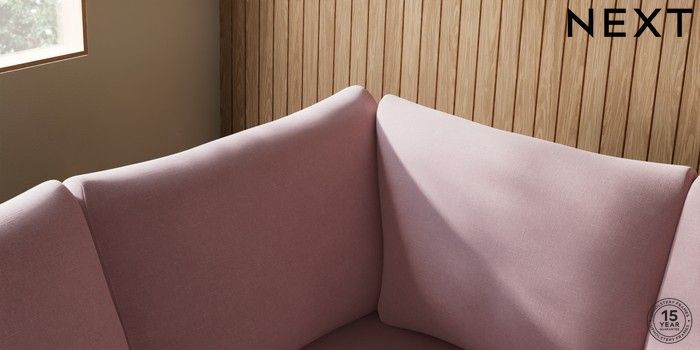 7.3.1 Buy Parker Large Corner Sofa - Left Hand Natural Mix Light Rose Pink Low Retro Tapered - Mid from the Next UK online shop Click here to use our accessible website