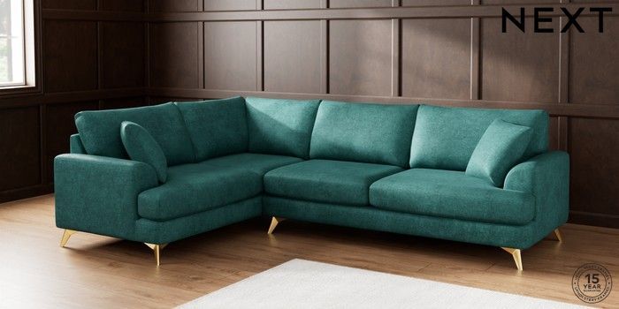 7.2.5 Buy Parker Large Corner Sofa - Left Hand Plush Chenille Dark Teal Green High Metal - Brass from the Next UK online shop Click here to use our accessible website