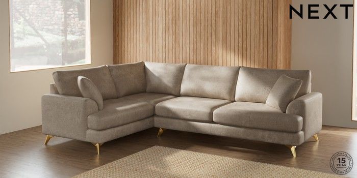7.2.5 Buy Parker Large Corner Sofa - Left Hand Plush Chenille Light Natural High Metal - Brass from the Next UK online shop Click here to use our accessible website