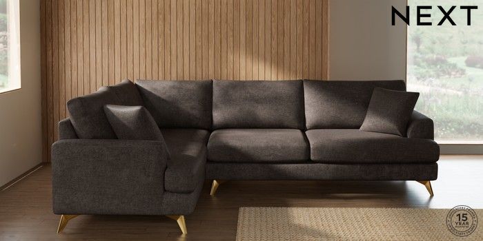 7.2.10 Buy Parker Large Corner Sofa - Left Hand Plush Chenille Mink Brown High Metal - Brass from the Next UK online shop Click here to use our accessible website