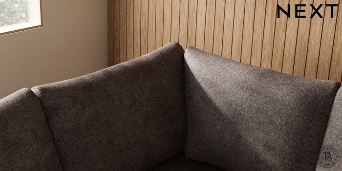 7.2.10 Buy Parker Large Corner Sofa - Left Hand Plush Chenille Mink Brown Low Retro Tapered - Mid from the Next UK online shop Click here to use our accessible website