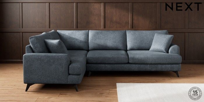 7.2.10 Buy Parker Large Corner Sofa - Left Hand Plush Chenille Slate Blue High Metal - Black from the Next UK online shop Click here to use our accessible website