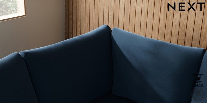 7.3.1 Buy Parker Large Corner Sofa - Left Hand Plush Velvet Easy Clean Airforce Blue High Metal - Brass from the Next UK online shop Click here to use our accessible website