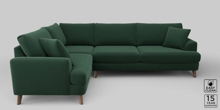 6.12.1 Buy Parker Large Corner Sofa - Left Hand Plush Velvet Easy Clean Bottle Green Low Retro Tapered - Mid from the Next UK online shop Click here to use our accessible website