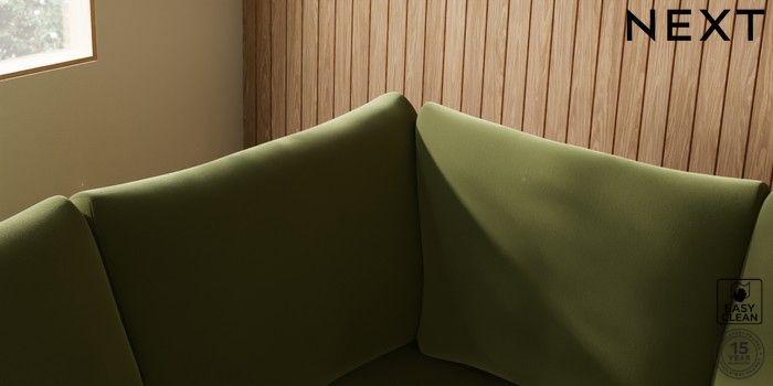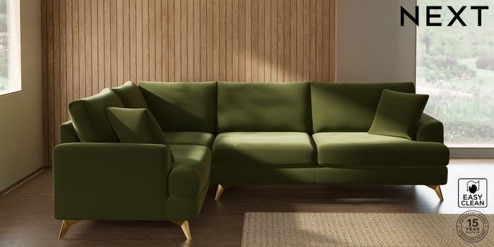 7.3.1 Buy Parker Large Corner Sofa - Left Hand Plush Velvet Easy Clean Mid Olive Green High Metal - Brass from the Next UK online shop Click here to use our accessible website