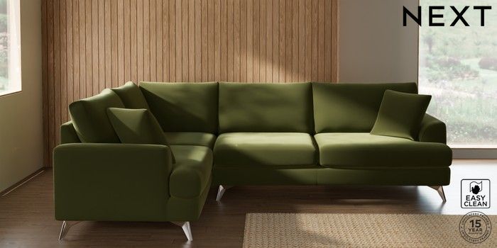7.3.1 Buy Parker Large Corner Sofa - Left Hand Plush Velvet Easy Clean Mid Olive Green High Metal - Chrome from the Next UK online shop Click here to use our accessible website