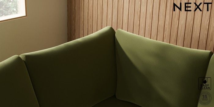 7.3.1 Buy Parker Large Corner Sofa - Left Hand Plush Velvet Easy Clean Mid Olive Green Low Retro Tapered - Mid from the Next UK online shop Click here to use our accessible website