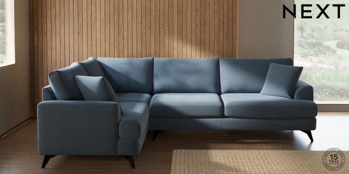 7.2.10 Buy Parker Large Corner Sofa - Left Hand Relaxed Linen Look Mid Blue High Metal - Black from the Next UK online shop Click here to use our accessible website