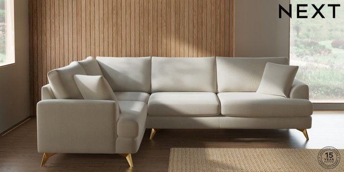 7.3.1 Buy Parker Large Corner Sofa - Left Hand Relaxed Linen Look Oyster High Metal - Brass from the Next UK online shop Click here to use our accessible website