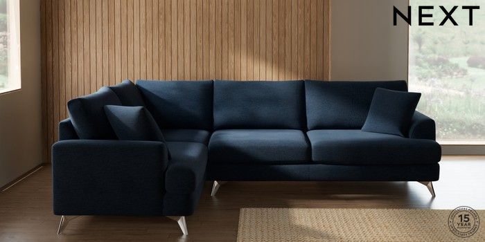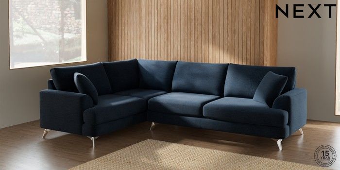 7.0.3 Buy Parker Large Corner Sofa - Left Hand Ripple Chenille Dark Blue High Metal - Chrome from the Next UK online shop Click here to use our accessible website