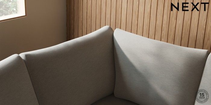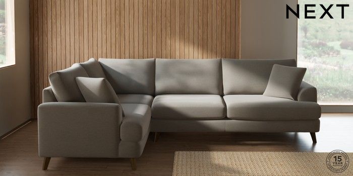7.2.10 Buy Parker Large Corner Sofa - Left Hand Ripple Chenille Light Natural Low Retro Tapered - Mid from the Next UK online shop Click here to use our accessible website