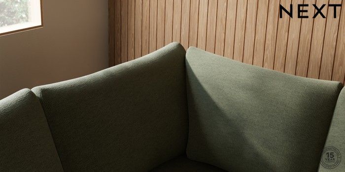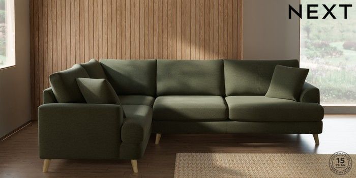 7.2.10 Buy Parker Large Corner Sofa - Left Hand Ripple Chenille Mid Moss Green Low Retro Tapered - Light from the Next UK online shop Click here to use our accessible website