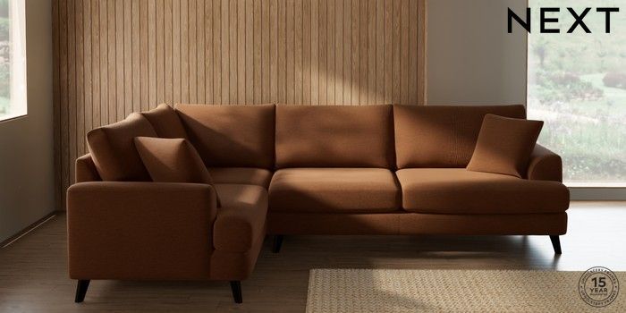 7.2.10 Buy Parker Large Corner Sofa - Left Hand Ripple Chenille Mid Rust Brown Low Retro Tapered - Dark from the Next UK online shop Click here to use our accessible website