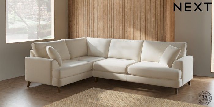 7.2.5 Buy Parker Large Corner Sofa - Left Hand Ripple Chenille Oyster Low Retro Tapered - Mid from the Next UK online shop Click here to use our accessible website