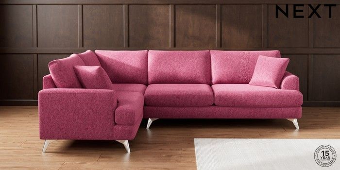 7.2.10 Buy Parker Large Corner Sofa - Left Hand Cotswold Chenille Dark Raspberry Pink High Metal - Chrome from the Next UK online shop Click here to use our accessible website