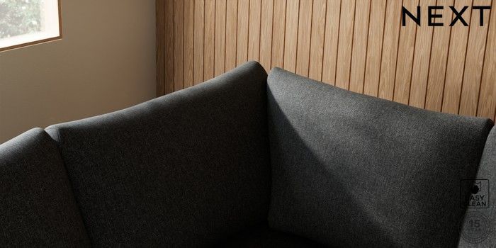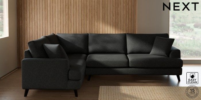 7.2.10 Buy Parker Large Corner Sofa - Left Hand Tweedy Blend Easy Clean Charcoal Grey Low Retro Tapered - Dark from the Next UK online shop Click here to use our accessible website