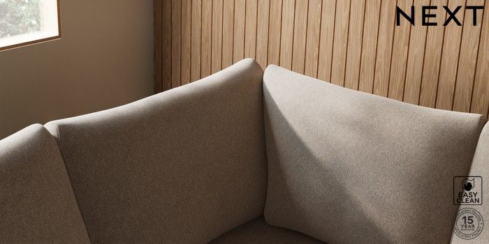 7.3.1 Buy Parker Large Corner Sofa - Left Hand Tweedy Blend Easy Clean Light Dove Natural High Metal - Black from the Next UK online shop Click here to use our accessible website