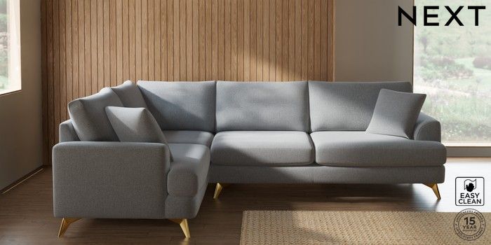 7.2.10 Buy Parker Large Corner Sofa - Left Hand Tweedy Blend Easy Clean Light Silver Grey High Metal - Brass from the Next UK online shop Click here to use our accessible website