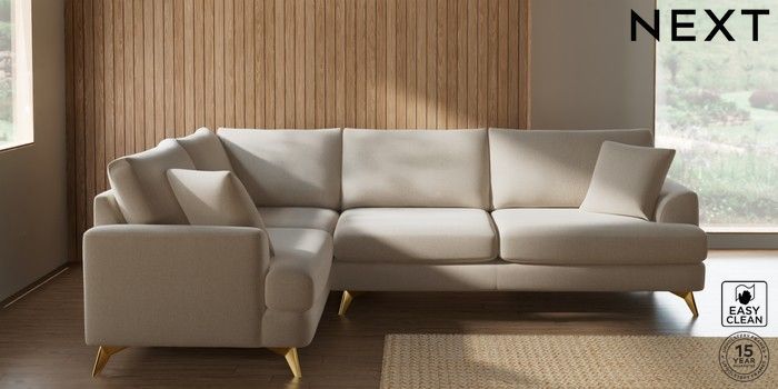 7.3.1 Buy Parker Large Corner Sofa - Left Hand Tweedy Blend Easy Clean Oyster High Metal - Brass from the Next UK online shop Click here to use our accessible website
