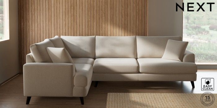 7.2.10 Buy Parker Large Corner Sofa - Left Hand Tweedy Blend Easy Clean Oyster Low Retro Tapered - Dark from the Next UK online shop Click here to use our accessible website
