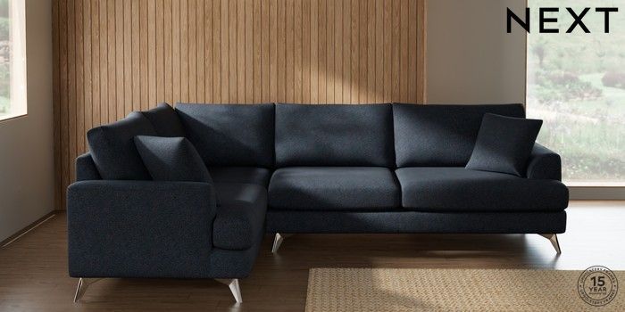 7.2.10 Buy Parker Large Corner Sofa - Left Hand Tweedy Chenille Navy Blue High Metal - Chrome from the Next UK online shop Click here to use our accessible website