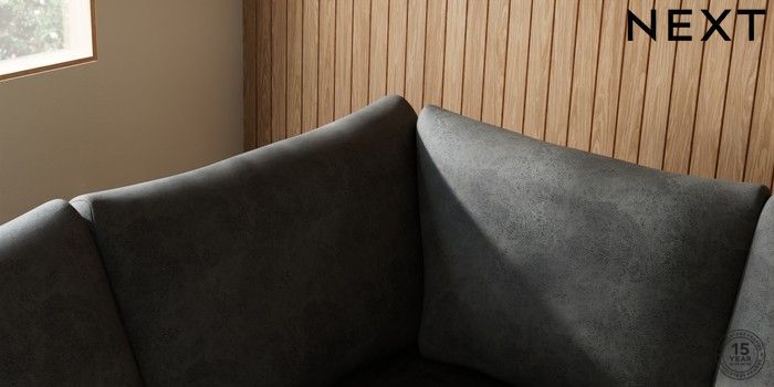 7.2.6 Buy Parker Large Corner Sofa - Left Hand Monza Faux Leather Easy Clean Dark Grey Low Retro Tapered - Mid from the Next UK online shop Click here to use our accessible website