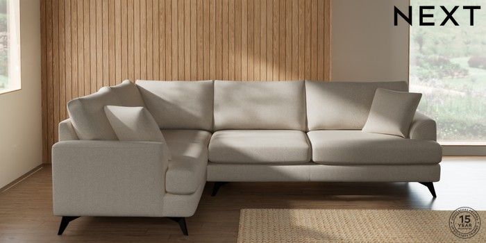 7.3.1 Buy Parker Large Corner Sofa - Left Hand Tweedy Chenille Oyster High Metal - Black from the Next UK online shop Click here to use our accessible website