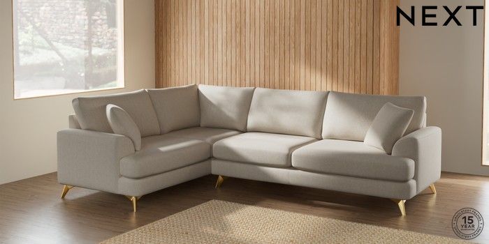 7.2.5 Buy Parker Large Corner Sofa - Left Hand Tweedy Chenille Oyster High Metal - Brass from the Next UK online shop Click here to use our accessible website
