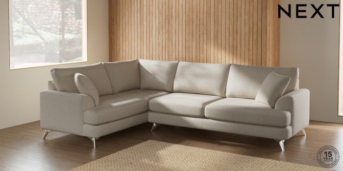 7.2.5 Buy Parker Large Corner Sofa - Left Hand Tweedy Chenille Oyster High Metal - Chrome from the Next UK online shop Click here to use our accessible website