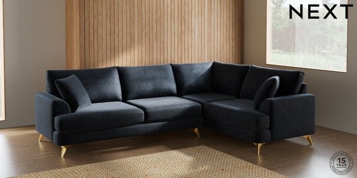 7.2.5 Buy Parker Large Corner Sofa - Right Hand Boucle Chenille Dark Slate Blue High Metal - Brass from the Next UK online shop Click here to use our accessible website