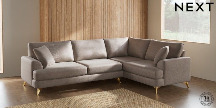7.2.5 Buy Parker Large Corner Sofa - Right Hand Boucle Chenille Light Natural High Metal - Brass from the Next UK online shop Click here to use our accessible website