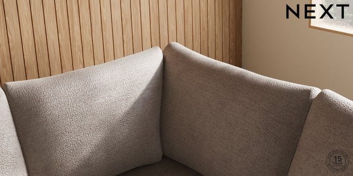 7.2.10 Buy Parker Large Corner Sofa - Right Hand Boucle Chenille Light Natural High Metal - Brass from the Next UK online shop Click here to use our accessible website