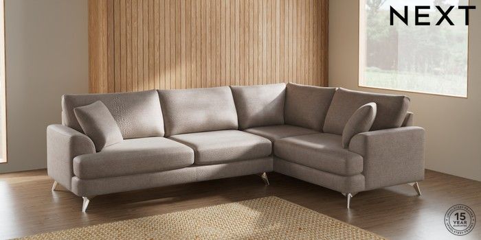 7.2.5 Buy Parker Large Corner Sofa - Right Hand Boucle Chenille Light Natural High Metal - Chrome from the Next UK online shop Click here to use our accessible website