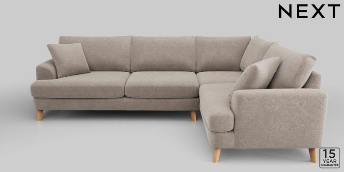 6.12.1 Buy Parker Large Corner Sofa - Right Hand Boucle Chenille Light Natural Low Retro Tapered - Light from the Next UK online shop Click here to use our accessible website