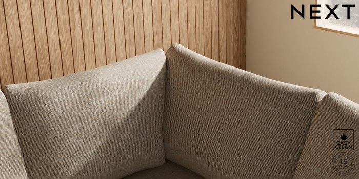 7.2.4 Buy Parker Large Corner Sofa - Right Hand Boucle Weave Easy Clean Dark Natural Low Retro Tapered - Mid from the Next UK online shop Click here to use our accessible website