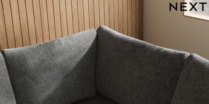 7.2.10 Buy Parker Large Corner Sofa - Right Hand Chunky Chenille Dark Grey Low Retro Tapered - Dark from the Next UK online shop Click here to use our accessible website