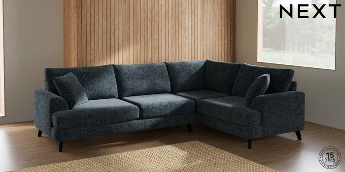 7.2.5 Buy Parker Large Corner Sofa - Right Hand Chunky Chenille Dark Navy Blue Low Retro Tapered - Dark from the Next UK online shop Click here to use our accessible website