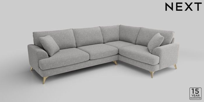 6.12.1 Buy Parker Large Corner Sofa - Right Hand Chunky Chenille Light Grey High Metal - Brass from the Next UK online shop Click here to use our accessible website