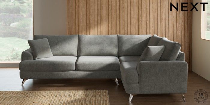 7.2.10 Buy Parker Large Corner Sofa - Right Hand Chunky Chenille Light Grey High Metal - Chrome from the Next UK online shop Click here to use our accessible website
