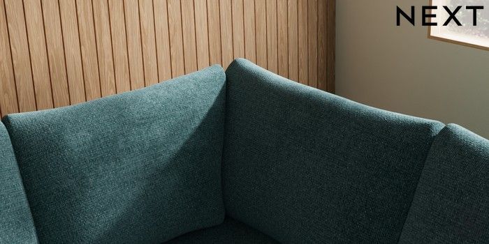 7.3.1 Buy Parker Large Corner Sofa - Right Hand Chunky Chenille Mid Teal Green High Metal - Brass from the Next UK online shop Click here to use our accessible website