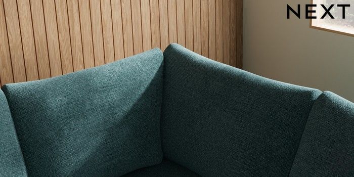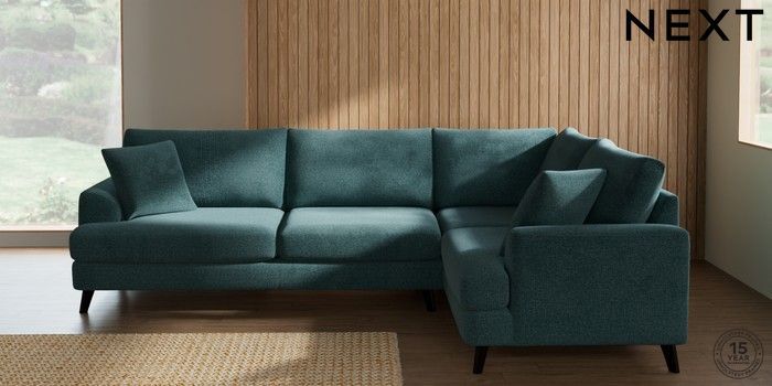 7.3.1 Buy Parker Large Corner Sofa - Right Hand Chunky Chenille Mid Teal Green Low Retro Tapered - Dark from the Next UK online shop Click here to use our accessible website