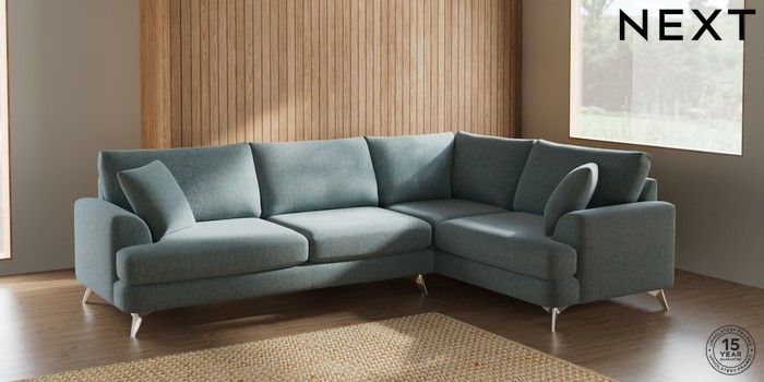 7.2.5 Buy Parker Large Corner Sofa - Right Hand Chunky Marl Mid Blue High Metal - Chrome from the Next UK online shop Click here to use our accessible website
