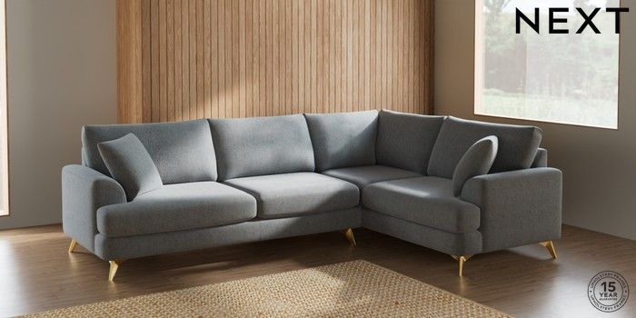 7.2.5 Buy Parker Large Corner Sofa - Right Hand Chunky Marl Mid Grey High Metal - Brass from the Next UK online shop Click here to use our accessible website