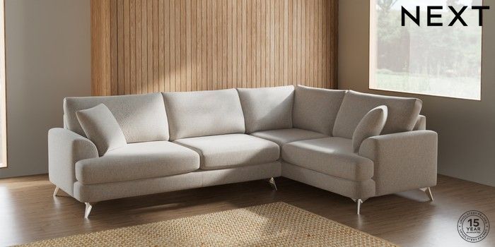 7.2.5 Buy Parker Large Corner Sofa - Right Hand Chunky Marl Oyster High Metal - Chrome from the Next UK online shop Click here to use our accessible website