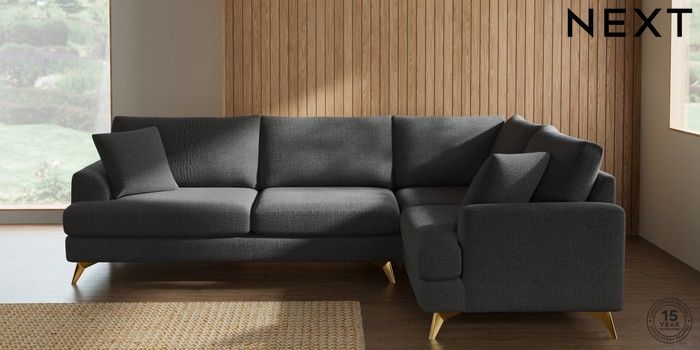 7.2.10 Buy Parker Large Corner Sofa - Right Hand Chunky Texture Dark Grey High Metal - Brass from the Next UK online shop Click here to use our accessible website